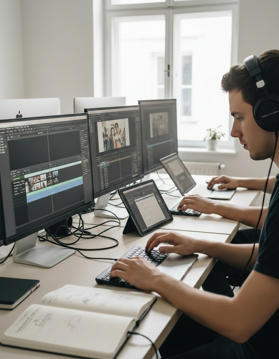 Als Full-Service-Agentur haben wir bei 8Frame verstanden, wie wichtig eine ganzheitliche Betreuung in Zeiten von Social Media ist. Regelmäßiger, hochwertiger Content ist heute entscheidend – viele Unternehmen sind jedoch damit überfordert oder finden keine Zeit, ihn kontinuierlich zu erstellen. Genau hier setzen wir an: Wir übernehmen die komplette Social-Media-Betreuung und stellen sicher, dass Ihre Kanäle regelmäßig mit relevanten Inhalten bespielt werden. Gleichzeitig halten wir Ihre Website aktuell, passen Inhalte an und präsentieren Ihr Unternehmen stets modern und ansprechend. So erhalten Sie alles aus einer Hand – einheitlich, professionell und zuverlässig – von 8Frame.